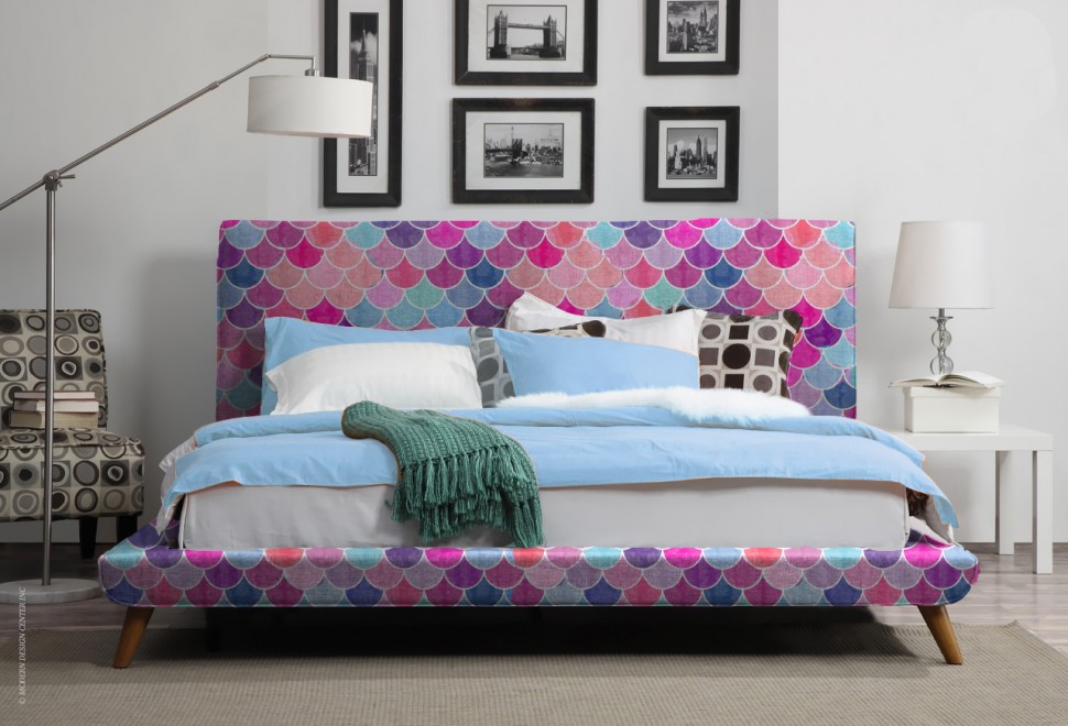 Модель представлена в мягкой, бархатистой ткани микровелюр, которая отлично пропускает воздух, отталкивает пыль и долго сохраняет изначальный цвет, не протираясь и не выцветая. Каркас и ножки кровати выполнены из дуба. Можно подобрать ткань на Ваш вкус из других коллекций.
